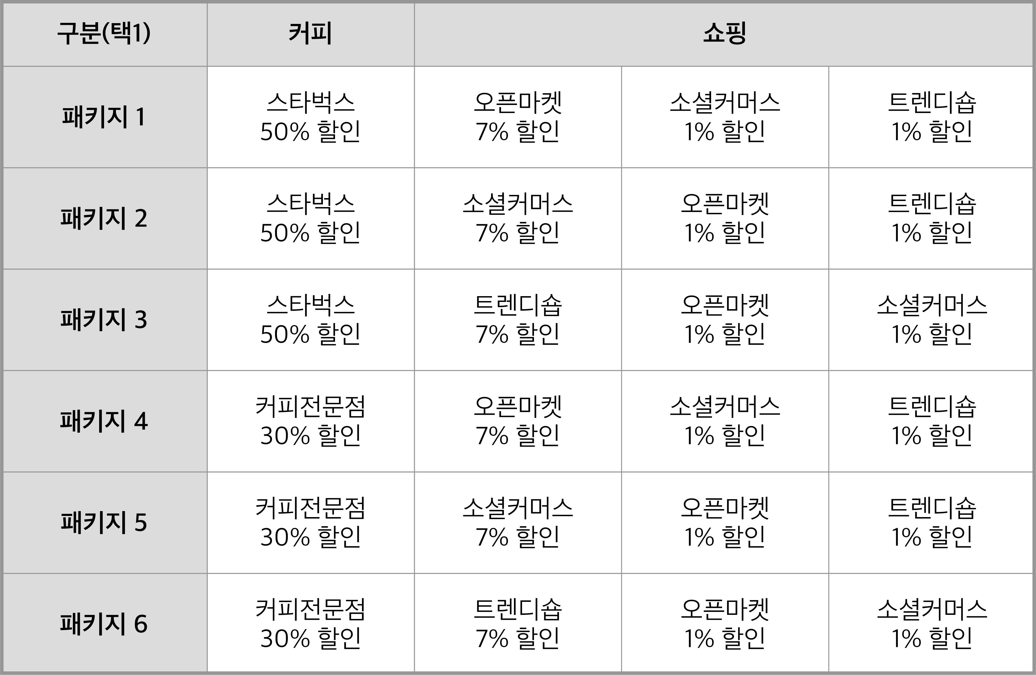 혜택 또한 패키지로 설정해서 선택하는 방식입니다.